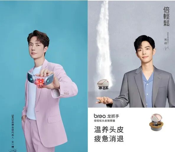 经过大手笔的电商化转型,如今倍轻松已有70%的收入来自线上,并重金聘请肖战作为代言人,而它的直接竞品SKG,代言人是王一博。
