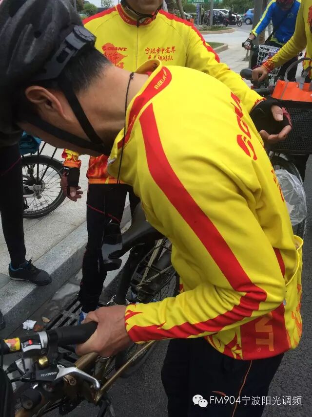 FM904“依佳依“主播与宁波市中老年骑行队 摄于:宁波人民广播电台