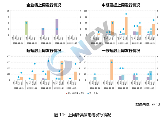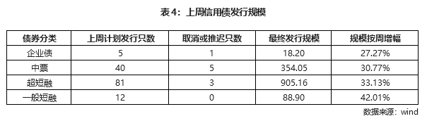 上周,信用债发行行业类型数量较前一周减少,电力热力燃气及水生产和供应业、综合、交通运输仓储和邮政业等行业信用债发行规模居前,电力热力燃气及水生产和供应业、制造业、交通运输仓储和邮政业等行业发行量增加,采矿业、水利环境和公共设施管理业、房地产业等行业发行量回落。![]()