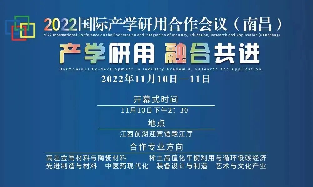 我校在2022国际产学研用合作会议(南昌)中承担了稀土分会场研讨会与未来技术交叉学科青年论坛的筹备工作。