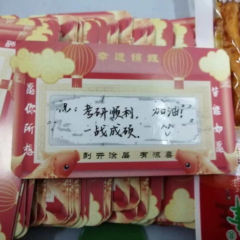一言一语皆为情,一事一物承祝愿。“暖冬诺研,一‘研’为定”,祝福“刮刮卡”、水果零食和学习用具等为考研学子送上满满力量!