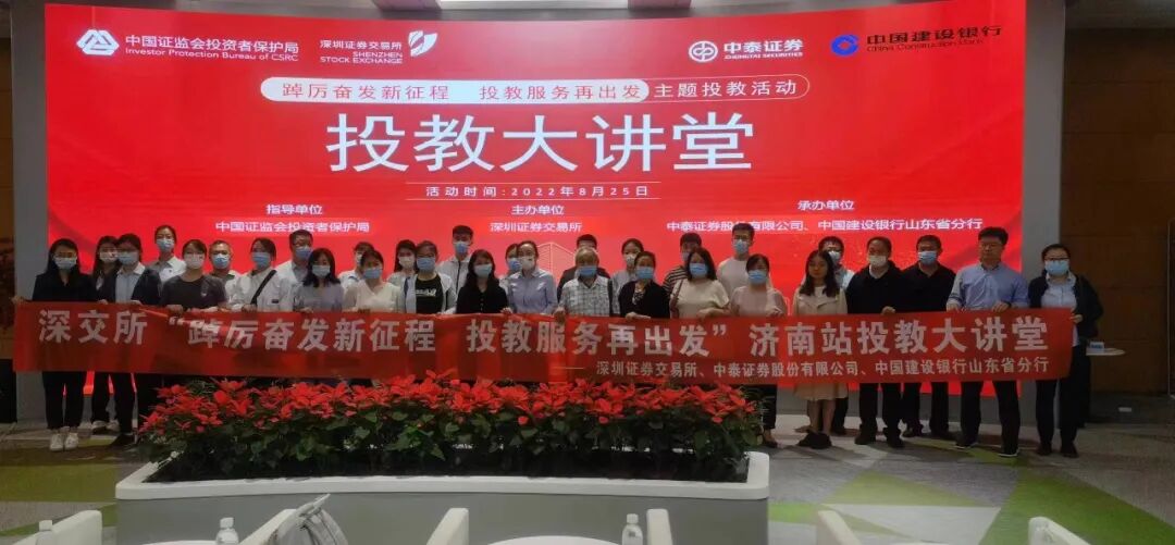 在8月份的山东站主题活动中,深交所联合青岛证监局、会员单位、中国建设银行山东省分行等银行机构,开展投教大讲堂、走进基金公司活动,传递科学理财观念,涵养理性成熟的投资文化。这是深交所首次与银行机构合作,把投教活动服务范围从股票、基金投资者延伸至银行渠道理财客户,来自建设银行、交通银行、招商银行等多家银行渠道的投资者参与活动。