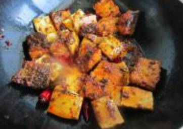 麻辣香锅最好不要加水,这样才麻辣香。配菜可以依自己口味,鱼块最好炸的不要太老了,最好嫩一些好入味