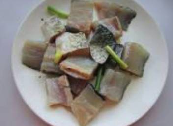 2. 草鱼洗净收拾干净切块,用料酒、少许盐拌均匀腌制10分钟,加淀粉拌均匀