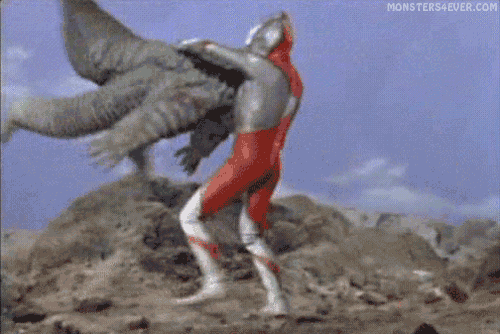 The “huge bad monsters” he fights started with Godzilla and the special effects helmed by Eiji Tsuburaya, who had a hit with his Godzilla series and soon created Ultra Q and Ultraman, two series in which giant heroes were more than a match for Tsuyburaya’s famous monsters.