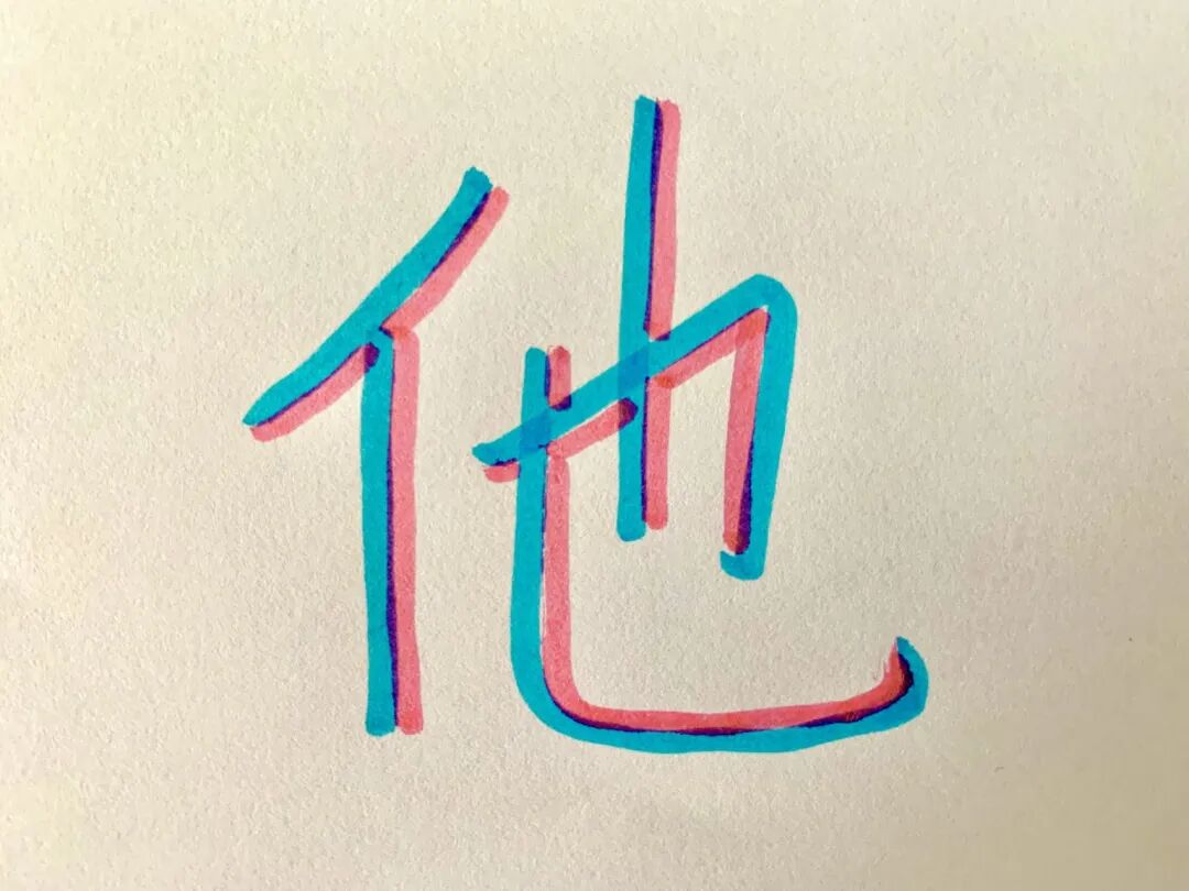 In Chinese, pronouns are a little bit more complicated. For much of Chinese history up until the 1920s, there was no distinct female third person pronoun — both men and woman were referred to as 他 (tā). 他 was originally a gender-neutral pronoun with a radical of 人 (rén) which means human, so this pronoun included everyone.