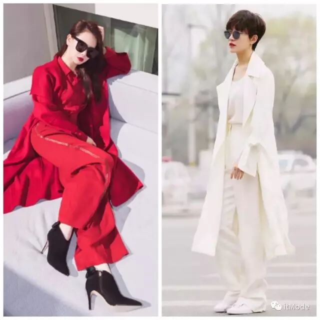 长外套+阔腿裤的搭配套路不仅席卷T台秀场,明星潮人们都也爱这样穿。▼