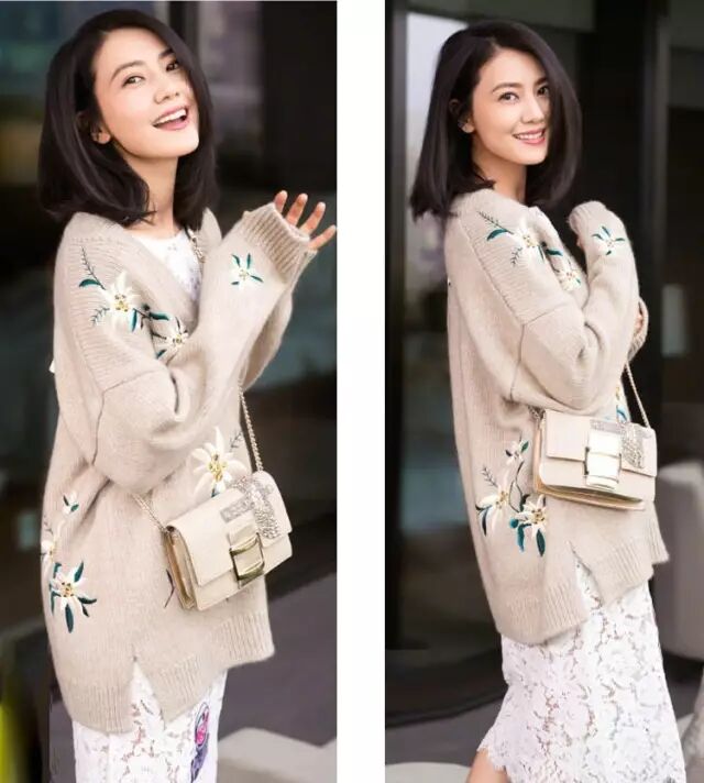 高圆圆选择这件Bally花朵毛衣,看上去很温柔。▼