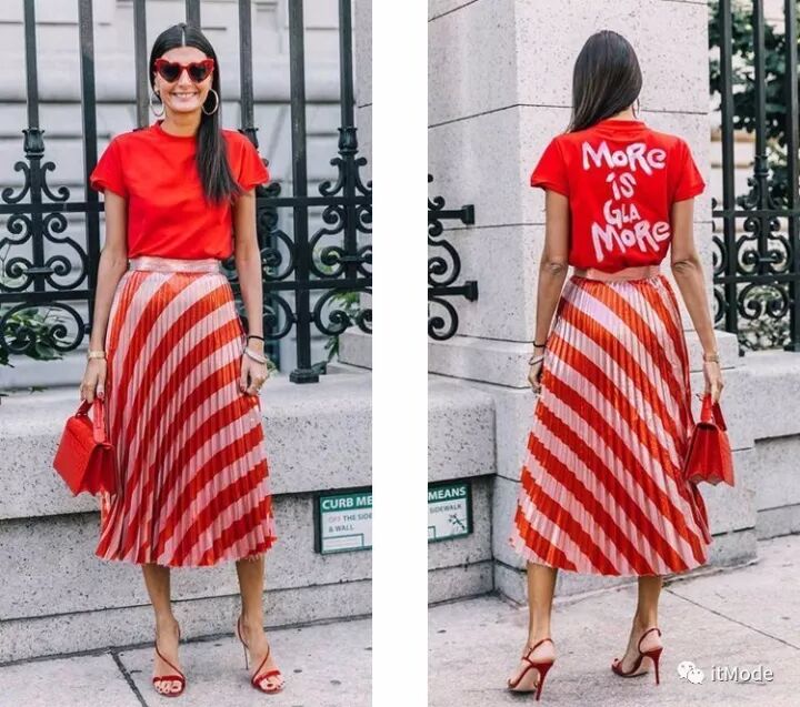带货女王杨幂当然不会错过猩红色,用白色T恤搭配更显肤白。▼