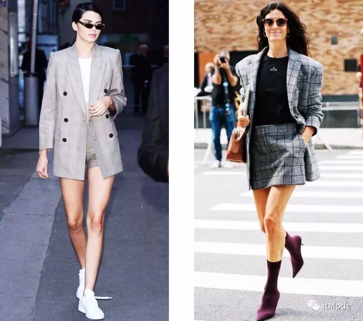 今年大热的格纹元素,运用在廓形感西装中更具老派的复古感。▼
