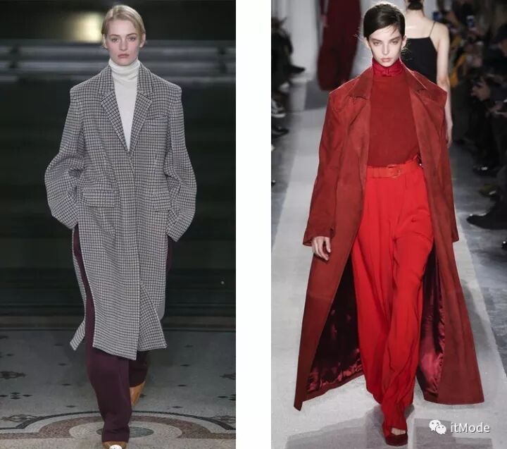在今年秋冬的潮流趋势中,长外套+阔腿裤是排在高位的流行搭法。▼
