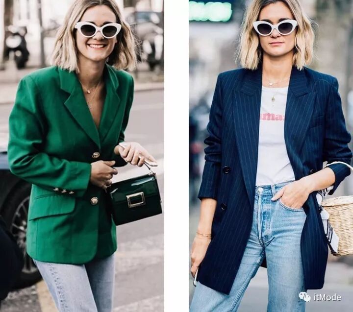 已经很有Power感的垫肩设计,搭配简约的T恤、牛仔裤就足够时髦。▼