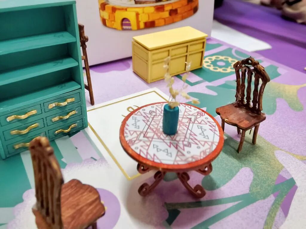 把木质图案刻下来,刷涂料,贴贴纸,用胶水黏合,就是我们的快乐小屋啦!