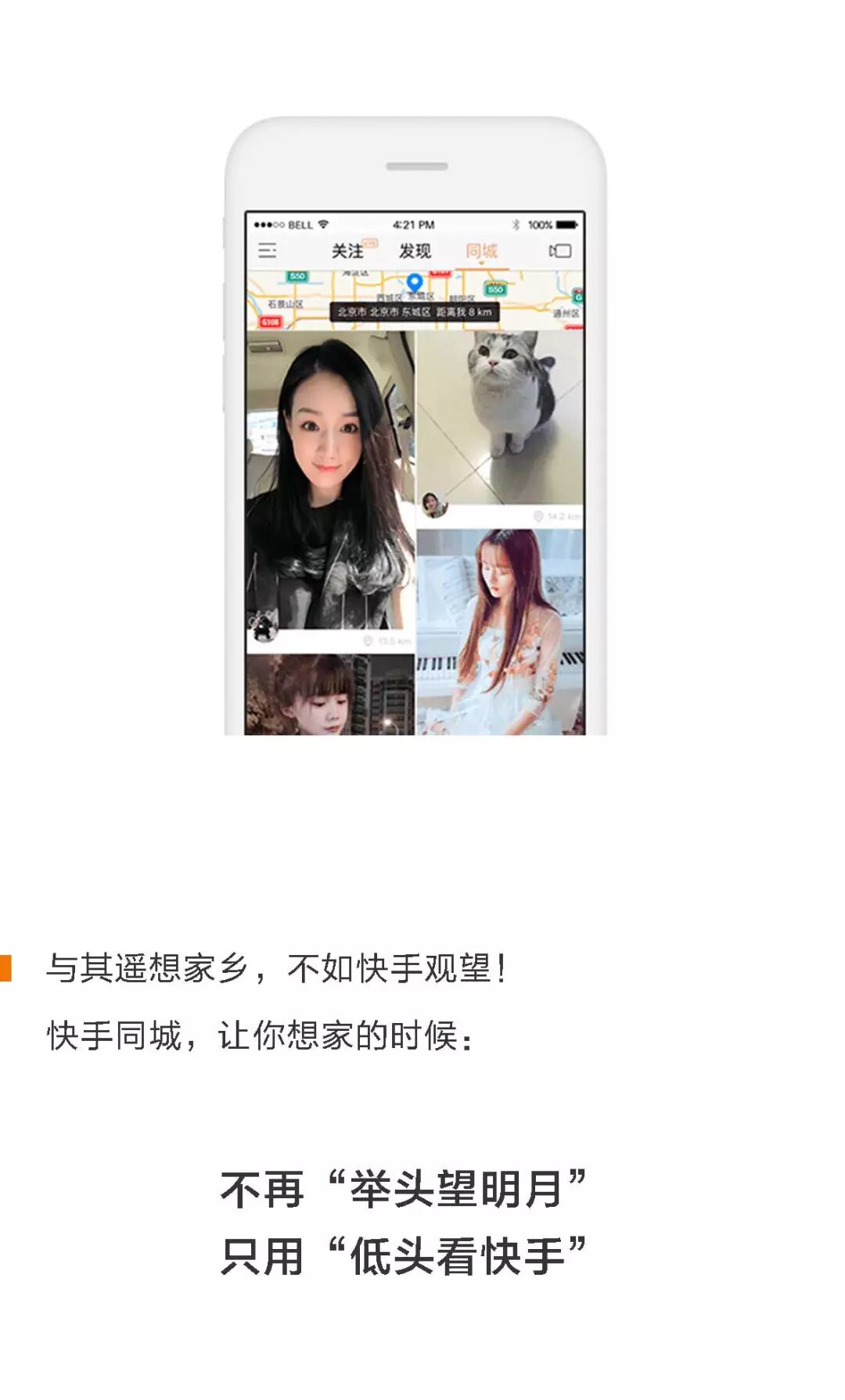 4月1日,快手针对想逃又不敢逃的北上广深青年,推出了家乡版快手短视频APP。业内人士爆料,这款集精尖黑科技于一身的全新快手,专为各种漂青年一解乡愁。从此漫漫思乡夜,青年们举头望明月,低头看快手。