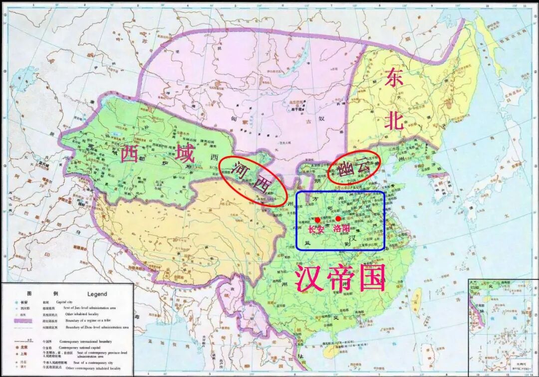 总之,古代的中原王朝,处于收缩期时,就是守好河西走廊和幽云地区;处于扩张期,就会进一步经营西域和东北。