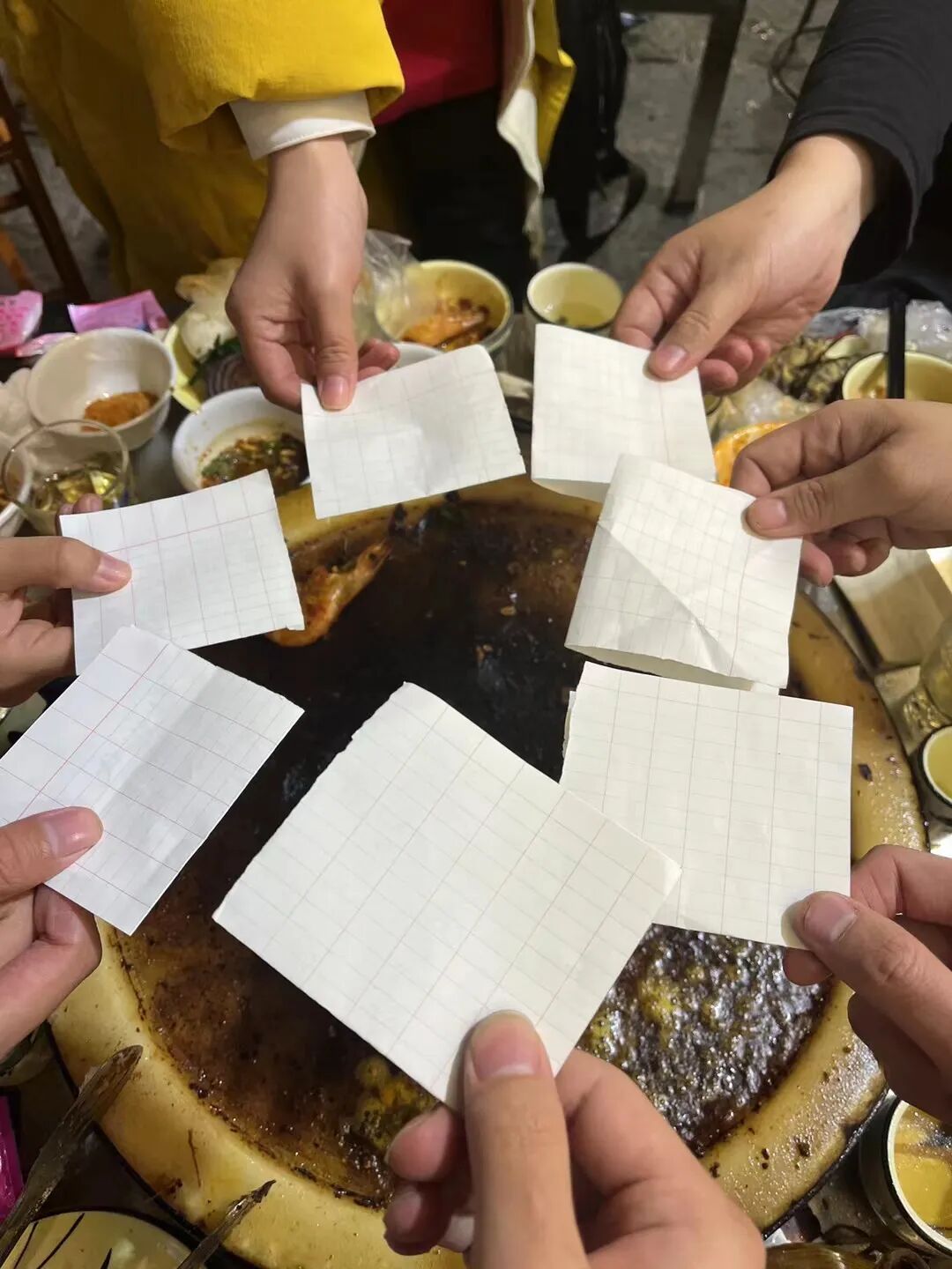 我们一起去参加木刻活动,我和二师兄发挥社牛本性,最终把一起活动的朋友包括木刻主理人都拉去吃了夜宵,大家吃着铁板烧谈天说地,一起写了新年愿望,保存在了大理,后续又和这些朋友约了去大理大学的行程,我甚至临时带着大理的新朋友去参加了北京朋友的饭局。