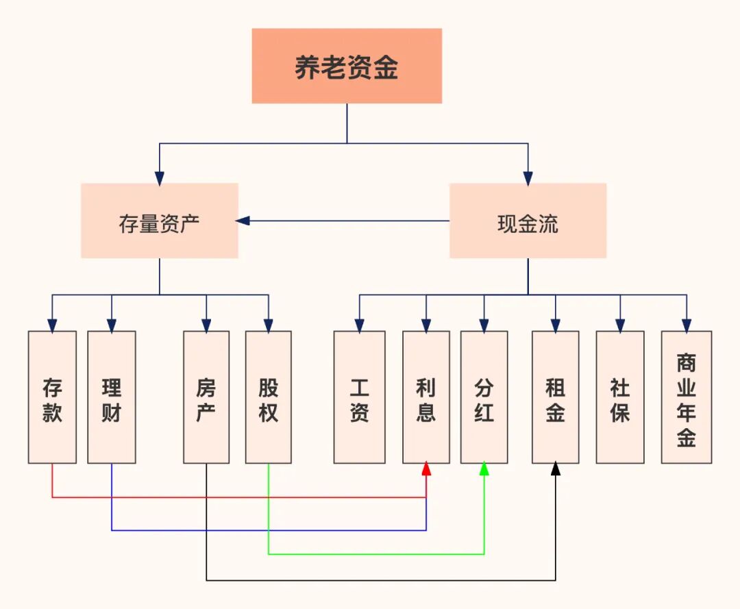 退休后的资金来源,可以分为两部分: