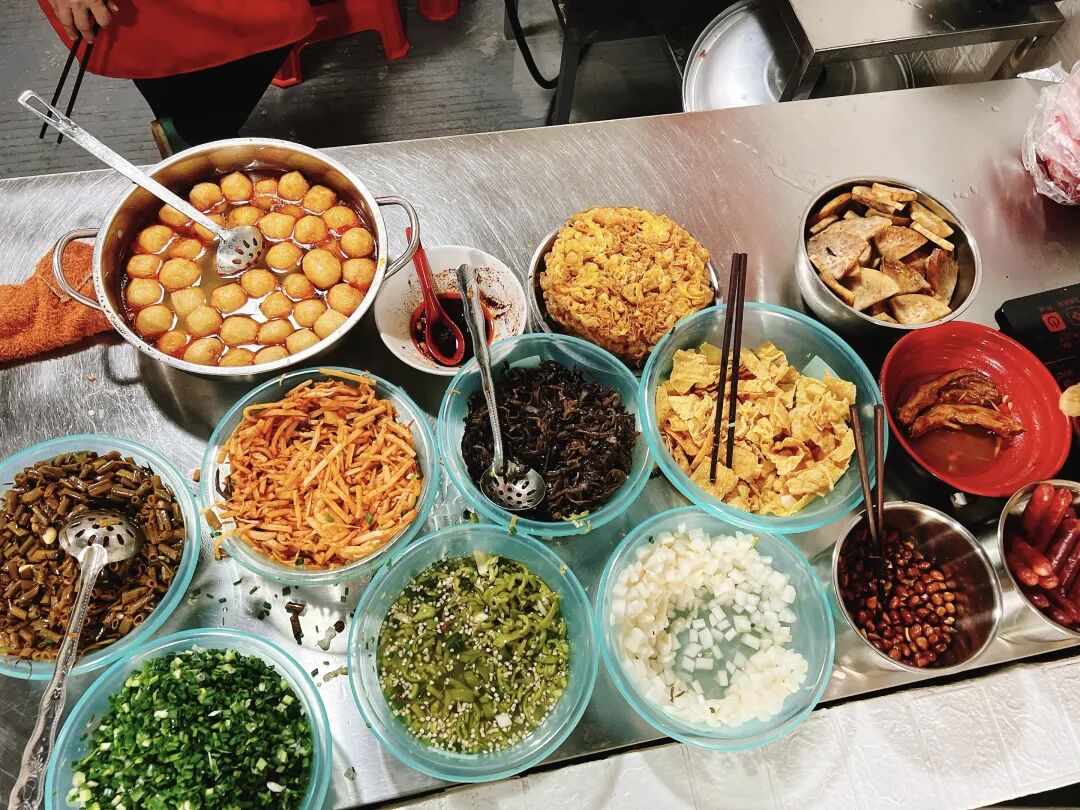 出了桂林的两江机场后,我们几乎顿顿都在嗦粉:卤菜粉、汤粉、煮粉、螺蛳粉…….吃的是不亦乐乎。