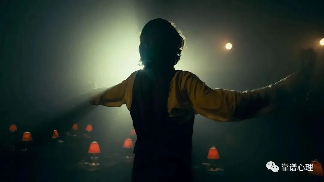 理解防御,我们就更能理解小丑的心理状态。如果没有他的幻想,他的生活只会让他感觉到生不如死——母亲从小非人的虐待、工作中被人利用出卖、感情里没人喜欢没人爱、政府靠不上的无奈、自尊不断遭到打击和伤害......脑补一下,我们当中任何一个人遇到其中的一个不幸,都会崩溃到怀疑人生,而遭受到n重暴击,“置之死地而后生”说的就是他了。