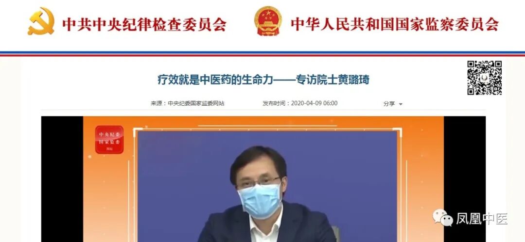 4月9日,中央纪委国家监委网站再度为中医发声,专访黄璐琦院士,谈中医药治疗为何受到新冠肺炎患者高度认可?