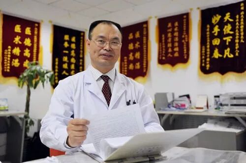 周福德的办公室里挂满了患者送来的锦旗。资料图片