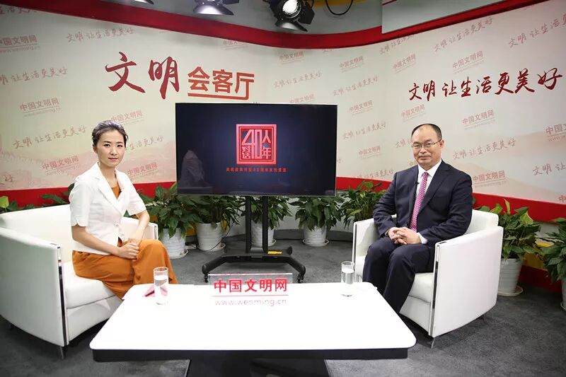 周福德(右)接受中国文明网《40人对话40年》节目专访。中国文明网 赵洋摄