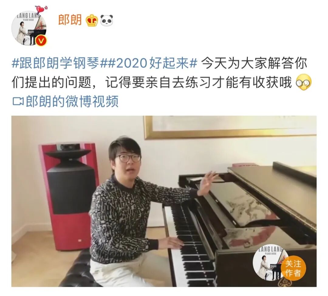 郎朗的微博更得很勤,有点陪陪大家宅家的意思,哐哐地弹钢琴,还用他幽默风趣的东北话,把要点,秘诀一一讲清,这也算是善举哈,要知道平时请郎郎上一堂私教得多贵……现在全免费了……