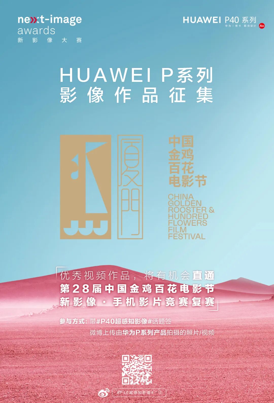 不仅每个活动周期送出3台华为P40 Pro和50台快充版移动电源,优秀作品更将获得直通第28届中国金鸡百花电影节新影像·手机影片竞赛复赛的机会哦!