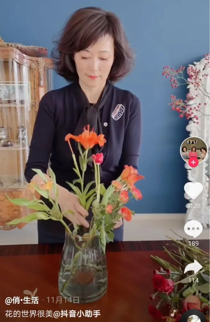▲贵妇们的插花日常,顺手变成一条短视频,省心省力又能收获流量,果然短视频是最适合贵妇们的内容创作。