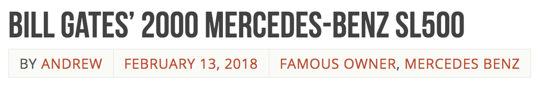 讲完政客和明星,不难发现,在选车风格上政客们讲究的是安全第一,明星们则追求拉风酷炫,那么富商豪门倒是正好综合了前两者,试图寻找到低调又奢华的平衡点。比如比尔·盖茨早年就拥有一辆和戴妃同款的SL500: