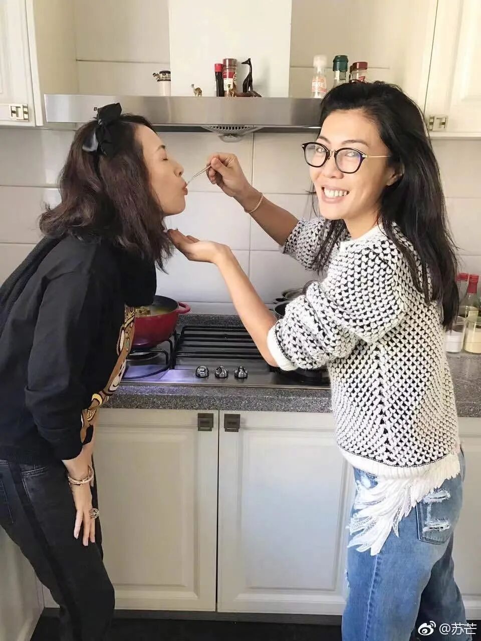 反观苏芒出走后的芭莎明星慈善夜,请到嘉宾的质量和热度都不足,星光寥落,话题噱头不再,无法再吸引瓜众的目光。▲2018年10月,苏芒出走后的芭莎慈善夜的嘉宾阵容确实有点弱。相比苏芒在位时的芭莎慈善夜,那可是中国名利场版本的Met Gala,大半个娱乐圈都要出动。而芭莎明星慈善夜也生动地向我们展示着苏芒的特性和优势,那就是善于结交名流,善于搭建人脉资源,这是苏芒之所以成为苏芒的最根本的东西。她是一个攒局者,但攒局者,有时也会被她的局狠狠抛弃。◥ 和大花女星的革命友谊——起于场面,也终于场面 ◣对于一个时尚杂志的主编来说,和明星们的关系是他们职业人脉中很重要的一环。苏芒和女明星们的关系到底如何,我们可以从《桃花坞》里她和舒淇的交流可以看出,苏芒跟大花们,实际上是很有距离的,生活上其实并不亲密,她们之间的关系,更像是一种互利合作的关系。对明星来说,苏芒当年更像是一个不能得罪的大媒体,你手握大刊(时尚集团)大局(慈善夜),我当然要给你面子,但你没有了,那我也就不费事和你周旋了,毕竟明星们精力有限。比如她跟舒淇寒暄我知道你很会做甜品,舒淇翻了个白眼(有图为证↓),说自己完全不会。装熟失败尴尬社死。