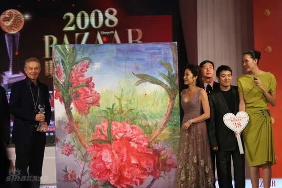 芭莎的报道出来可把邓姐高兴坏了。邓文迪当即就把自己的蓝颜知己英国首相布莱尔介绍去了当年的芭莎慈善夜,并通过电话远程拍下当晚最贵的一幅画,周春芽的《江南一枝花》。