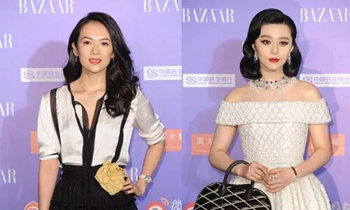 名场面一:2014年的芭莎慈善夜,大花红毯压轴之争。