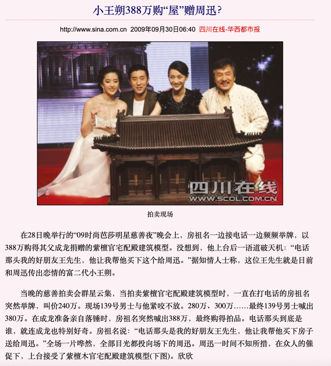 作为没有背景却在上流社会走动的人,还要学习成为一个优秀的中介,通过自己勤快的脚程,拉拢各方人脉资源,并促成双方的见面,谈拢合作。苏芒多次对外描述她忙碌的日常,一天飞三个城市,见不同投资人、广告商、客户以及她的明星朋友。苏芒拉人脉最好的平台就是芭莎慈善夜,有人笑称这就是一个高级的中介平台。在芭莎慈善夜上,想要结交权贵的,想要名气曝光的,甚至富二代想要泡妞的... ...都可以在这个平台满足自己的需求。比较出圈的例子是为博美人一笑,京城四少之一的王烁花388万买紫檀模型转手赠给他的绯闻女友周迅。紫檀屋模型实物细节图,长124cm,宽89cm,高79cm ▼▼▼芭莎慈善夜的创意最初是那英向苏芒提议的,一开始是希望在明星间互相消耗对方不用的闲置奢侈品。2003年正值非典,苏芒就把拍卖所得捐给红十字会。