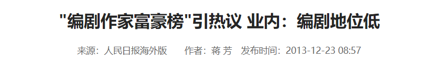▲图源:《"编剧作家富豪榜"引热议 业内:编剧地位低》。
