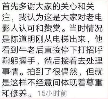 陈道明隔着人群看到牛犇老师,立刻点头弯腰问候。