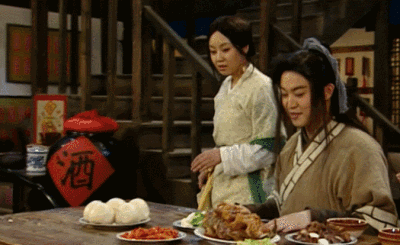 然后就有了佟湘玉的陕西话,白展堂的东北话,郭芙蓉的闽南话,吕秀才的上海话和英语,燕小六的天津话,邢捕头的山东话。全国方言一锅烩一起,形成了一条生动有趣的搞笑链。