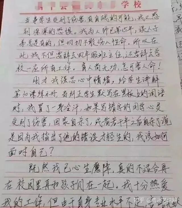 “既然我已心生魔障,真的不适合再在校园里和孩子们一起。我十分热爱我的工作,但由于自身专业水平不足,言语无状,实在不能再留在这里。”