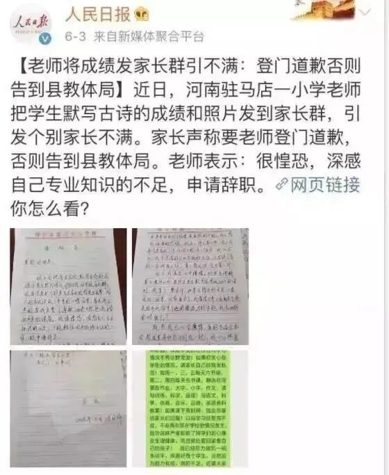 这位来自河南驻马店的小学老师,只因为把班里学生默写古诗的成绩和照片发到家长群里,就遭到部分家长的指责。