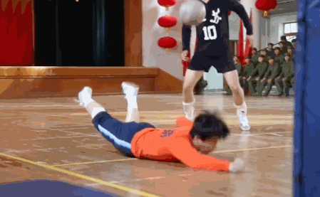 挑战高难度的“鱼跃”动作,他反复扑地26次,全力以赴做到最好。