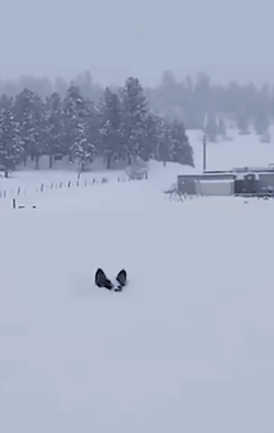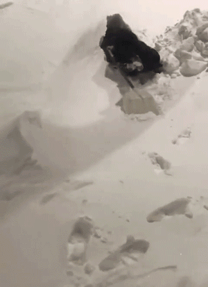 别人在雪中漫步,它在雪中遨游