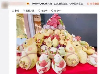 所以一般老人过生日,山东人很爱买这种“大馒头蛋糕”送给长辈。