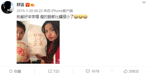 黄渤手中这个比脑袋还大的山东手工大馒头,其实早在几年前,舒淇就晒过同款。