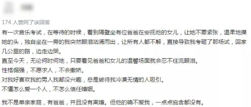 知乎上有这样的一个问题:从小缺乏父爱的孩子会是怎样的?