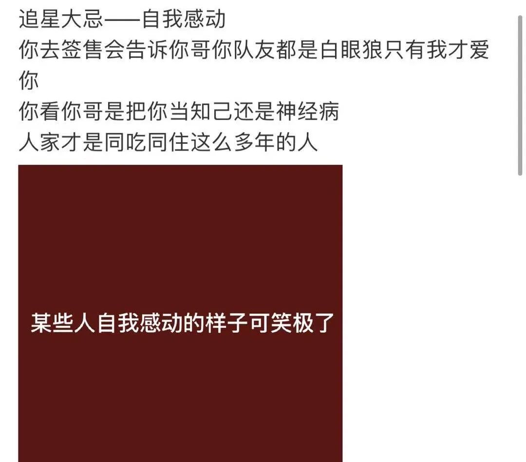 群体就不一样了,在追星的语境下,他们不受理性所约束,只能理解那些临时拼凑起来的观念;他们从没有渴求过真理,只会远离那些同他们的品位完全不符的所谓证据。
