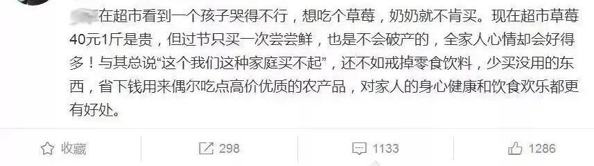 她在超市看到有小孩想吃草莓,奶奶嫌贵不给买。