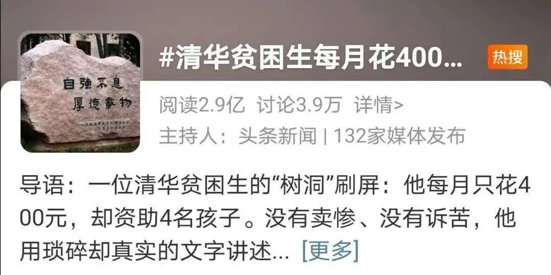 作者家中拮据,7年前以全省前十的成绩考上了清华大学。