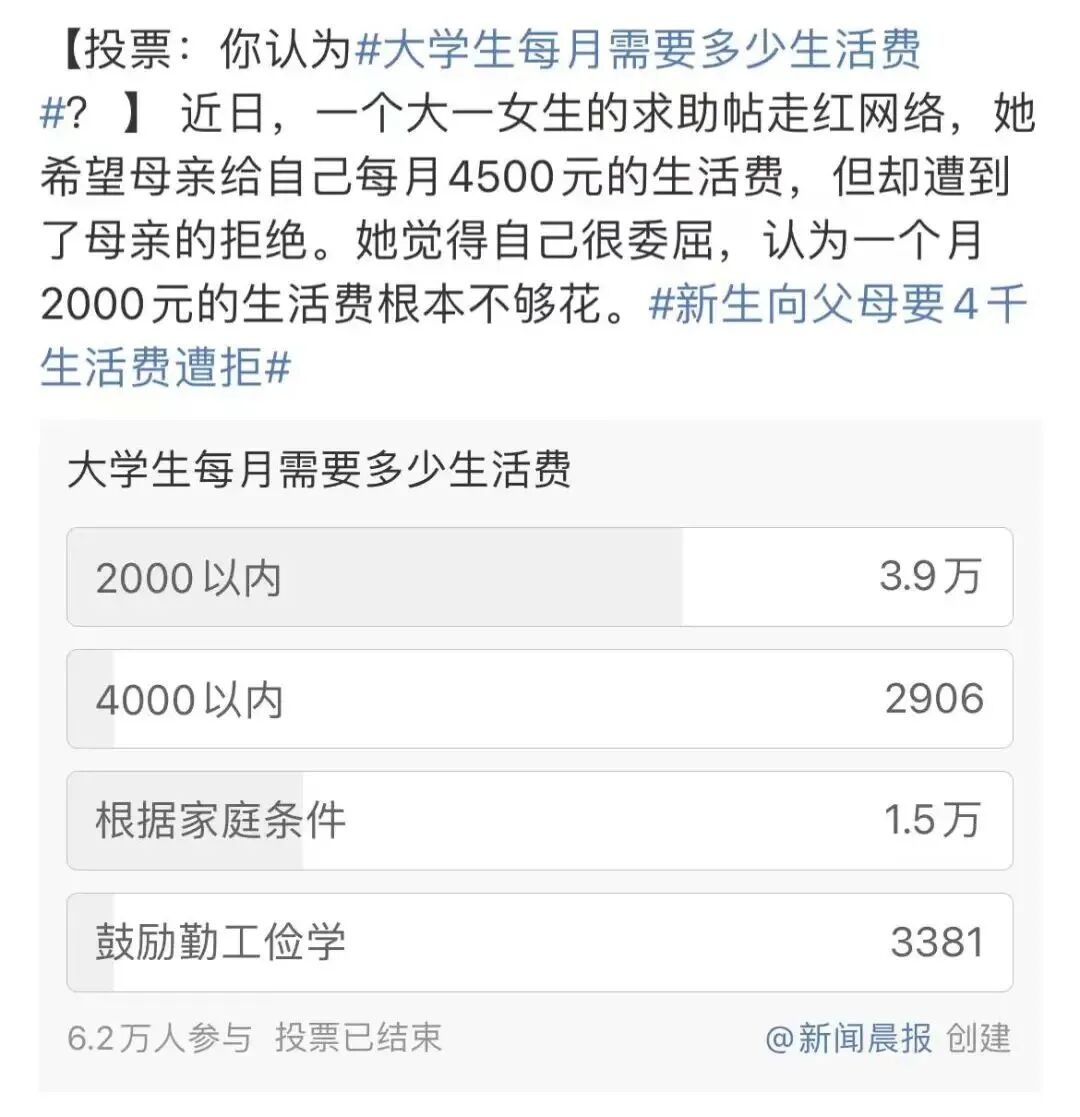 这篇文章的目的也不是刻意批评家境优渥的大学生,毕竟生活费多少,还是一个冷暖自知的事情。