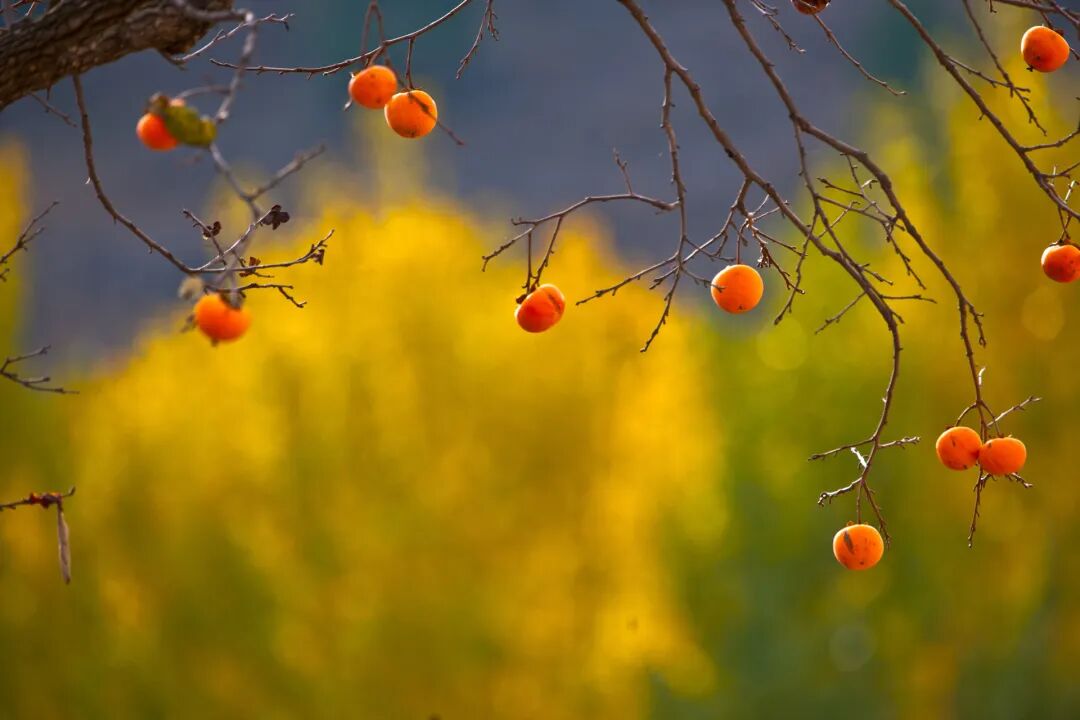 随着柿子不断地掉落,下面的人手脚飞快地把它们捡到竹筐里,同时还不忘高声大嗓地和树上的人拉着家常。