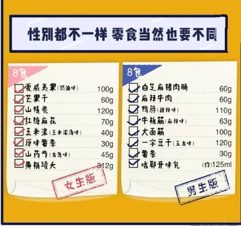也有知名零食品牌推出过“女生版”和“男生版”零食礼包。